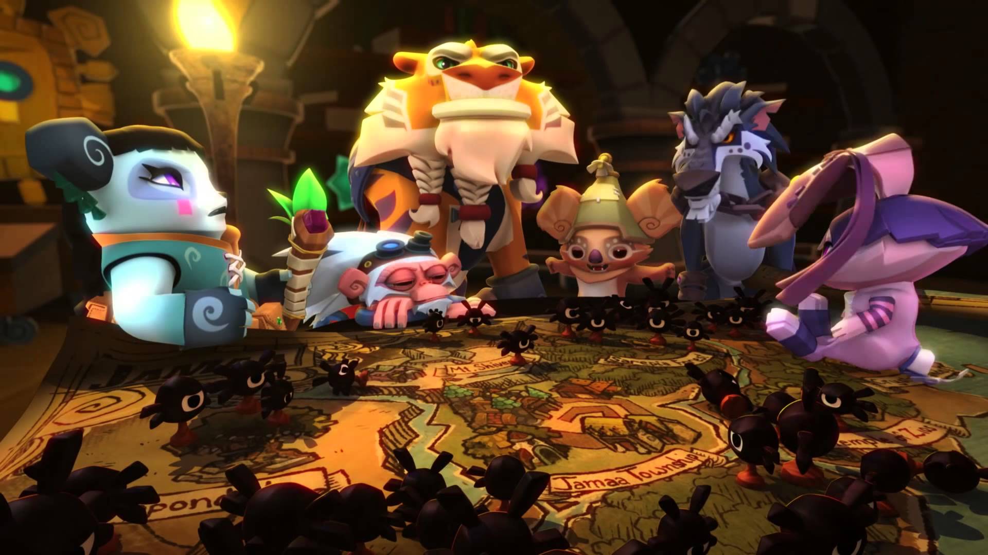 Liza the panda Cosmo the koala Graham the monkey Sir Gilbert the tiger Peck the rabbit Greely the wolf and Tavie the Dolphin. They were first seen as a statue at the AJ Birthday Party and have yet to make an appearance in the Adventures. Amelia is the Alpha of the FoxesTheir stone statue is currently available to purchase at the Chamber of Knowledge in the Mystery Emporium.