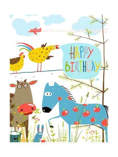 Colorful Funny Cartoon Farm Domestic Animals Birthday Greeting Card Countryside Humor Cute Colorfu Art Print Popmarleo Art Com