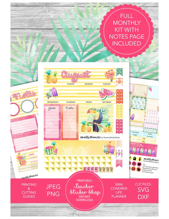 August Monthly Planner Stickers And Notes Page Kit For Erin Etsy