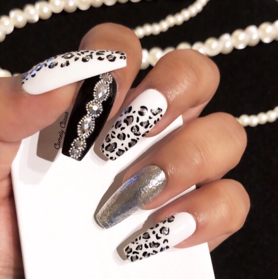Snow Leopard Bling Press On Nails Classy Crystals Etsy