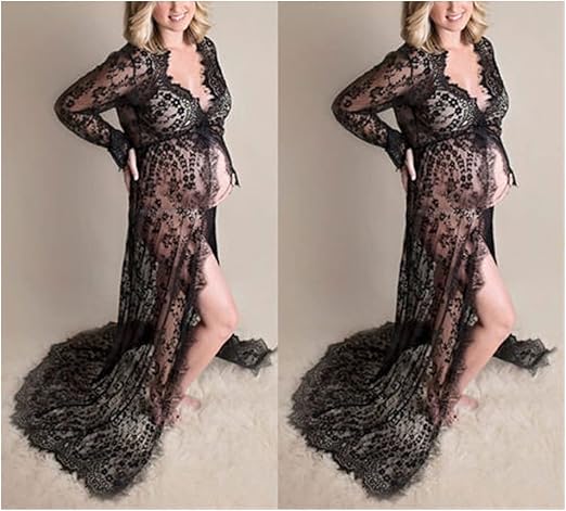 Amazon Com Snow Scene Women V Neck Gown Lace Maternity Maxi Dresses Fancy Shooting Photo Pregnant Women Dresses Photography Color C Maternity Size Large Home Kitchen