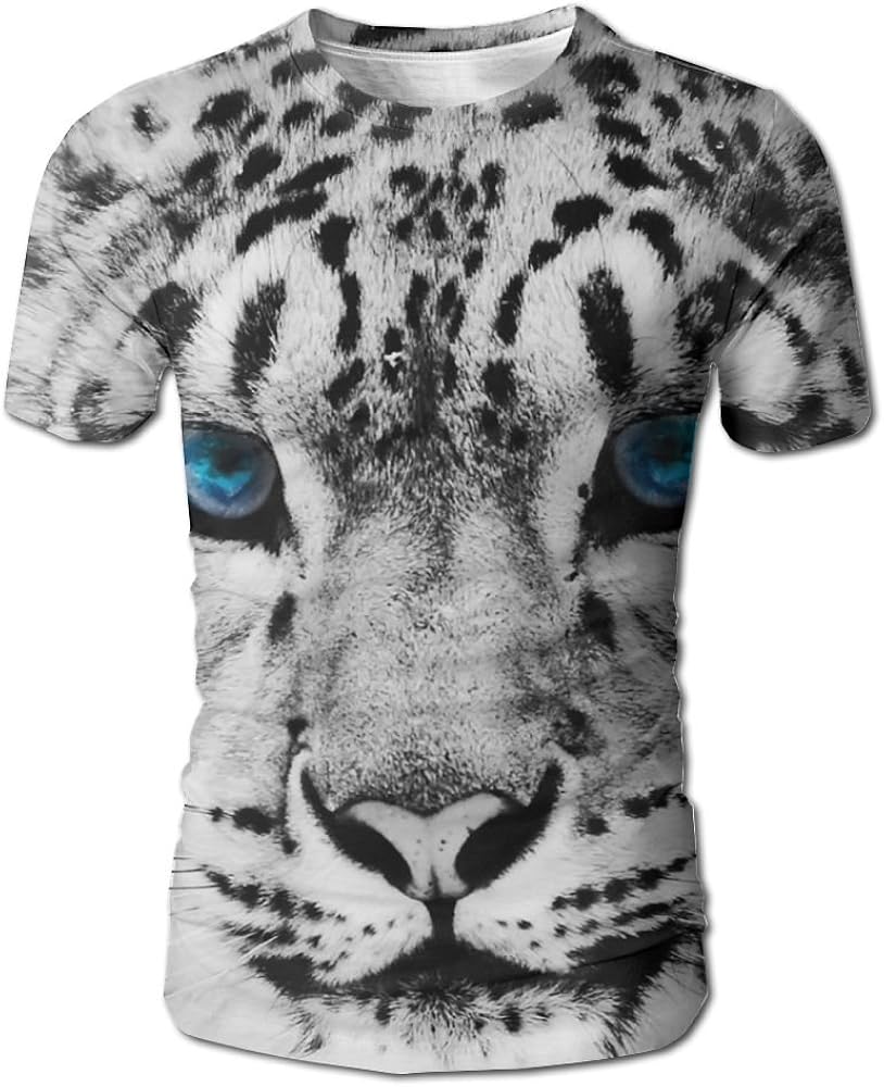 Amazon Com Jingclor Men S Black And White Snow Leopard Cheetah Crewneck Short Sleeve T Shirt Tee Clothing