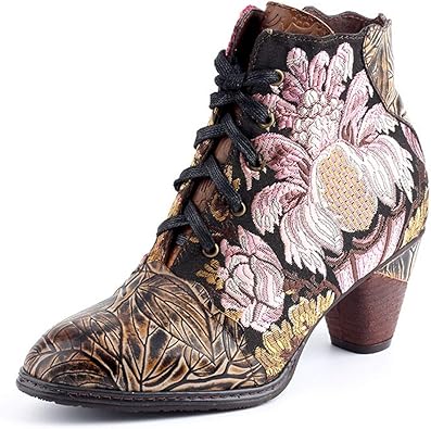 Amazon Com Nuheel Women S Ankle Boots Winter Outdoor Snow Boots Shoes Handmade Splicing Ladies Leather Low Chunky Block Heels Boot Round Toe Fur Lined Warm Boots Lace Up Zipper Walking Wedding Party