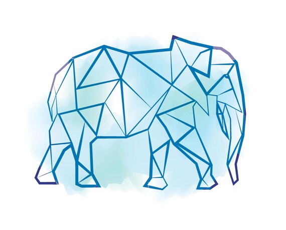 Print At Home Geometric Animal Wall Art Blue Elephant Etsy