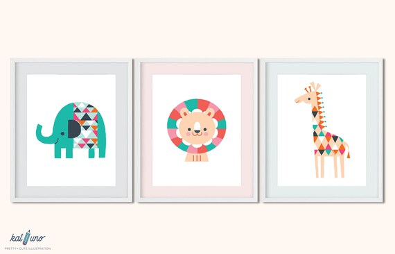 Geometric Animal Digital Print Set Kid Room Art Nursery Wall Etsy