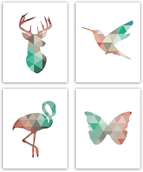 Amazon Com Animal Art Prints Geometric Animal Wall Art Set Of 4 Unframed 8x10 Inches Wall Art