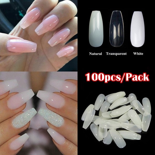 100pcs Bag Fake Nails Long Ballerina Half French Acrylic Nail Tips Square Head Shopee Philippines