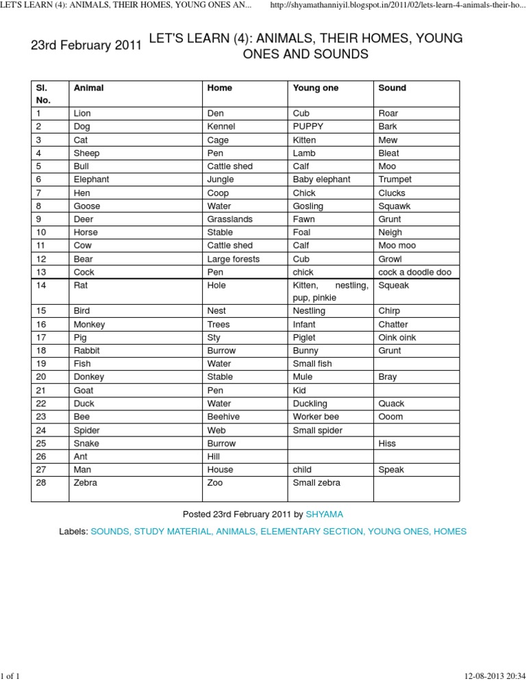 Animals Their Homes Young Ones And Sounds Animals And Humans Organisms