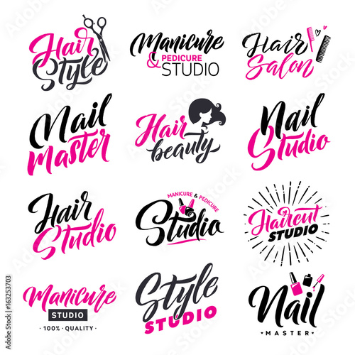 Logo Beauty Salon Lettering Set Hair Studio And Nail Master Custom Handmade Calligraphy Vector Stock Vector Adobe Stock