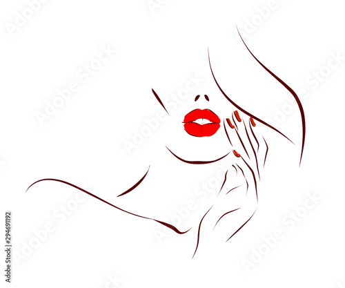 Woman S Face Hair Hand Lips With Red Lipstick And Nails With Red Nail Polish Hand Drawn Illustration On The Theme Of Beauty And Care Vector Stock Vector Adobe Stock