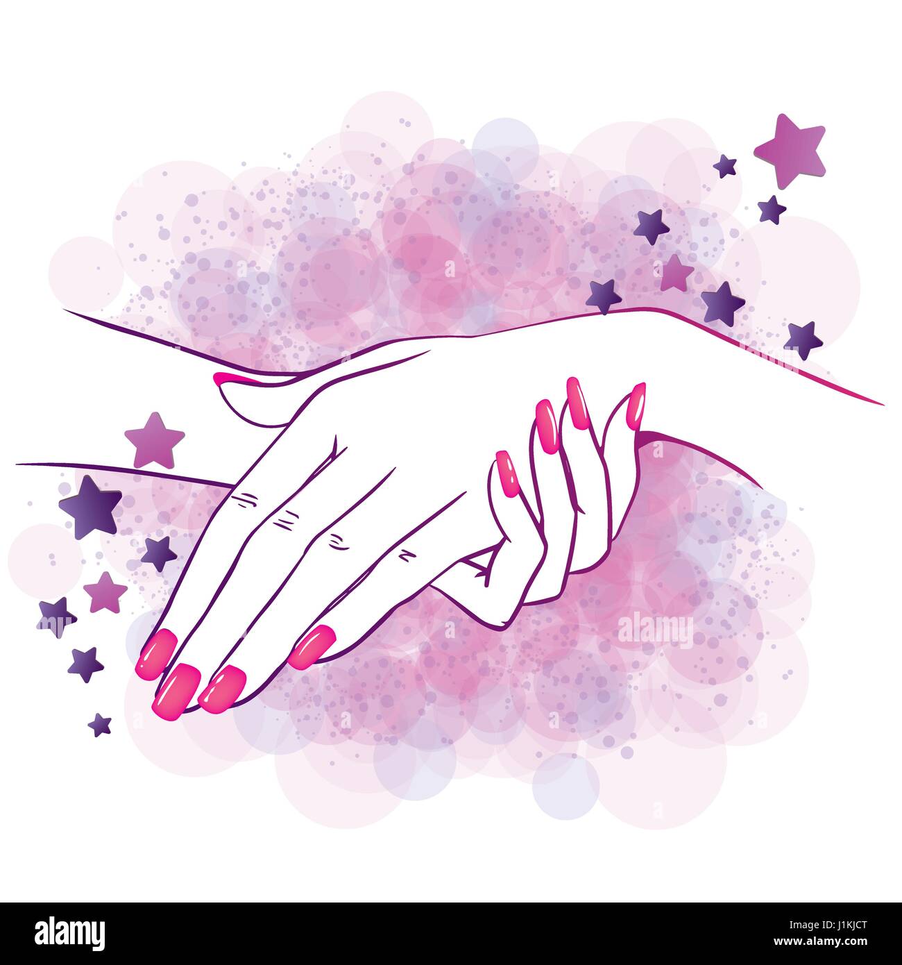 Vector Beautiful Woman Hands With Pink Nail Polish Handwritten Lettering About Nails Vector Beautiful Woman Hands With Pink Canstock