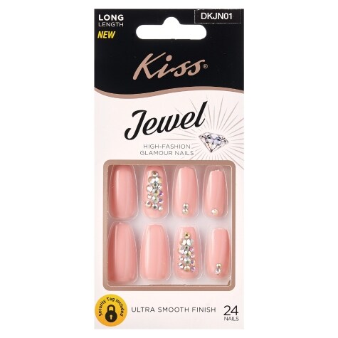 Kiss Pink Long Jewel Artificial Nails 24 Ct Family Dollar