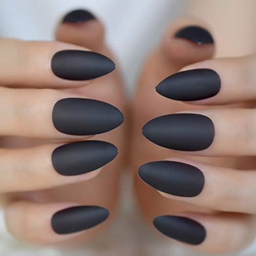 In fact matte black nails paired with even an all-pastel pink ensemble would be a complete showstopper. Bmadge Matte Stiletto Press on Nails Black Medium Leaf Fake Nails Full Cover Snake Prom Party Punk Artificial False Nails Tips for Women and Girls 24Pcs Black A Brand. These nails can easily be filed down to better fit your natural nail.