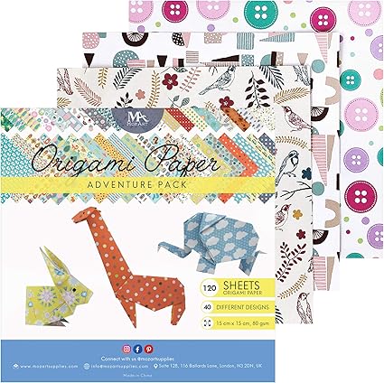 Amazon Com Origami Paper Set 120 Sheets Traditional Japanese Folding Papers Including Floral Animal Prints Aztec Geometric Origami Papers For Kids Adults Mozart Supplies