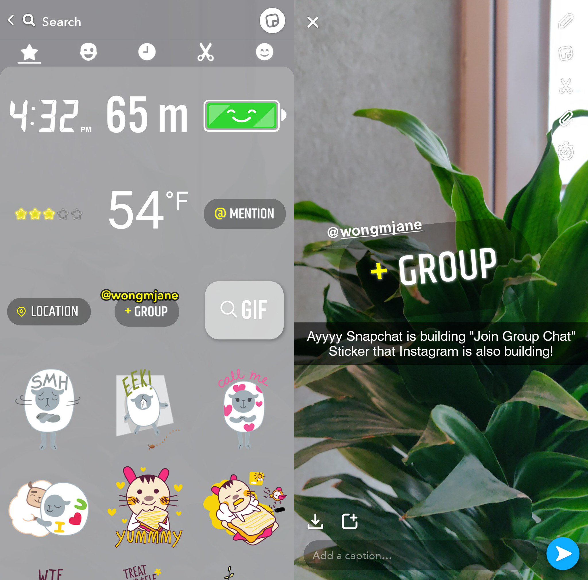 Jane Manchun Wong On Twitter Snapchat Is Building Join Group Chat Sticker Instagram Is Also Building One That I Discovered Last Month You Re Welcome Snap Let S See Who Release It First
